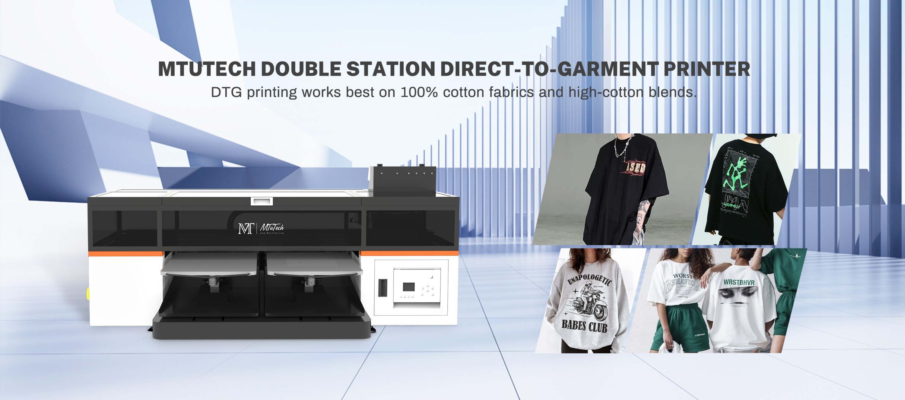 We're gonna to discover the World of MTuTech DTG Printing today ! Our double station DTG printer allows for high-quality, full-color, and detailed prints on a variety of fabrics, making it printing ideal for custom apparel production. It's very easy to get bright prints & amazing print speed & reliable and easy to use equipment. DTG is especially favored by businesses that focus on on-demand printing or short-run production, perfect for start-ups, medium-sized and large-volume print shops.