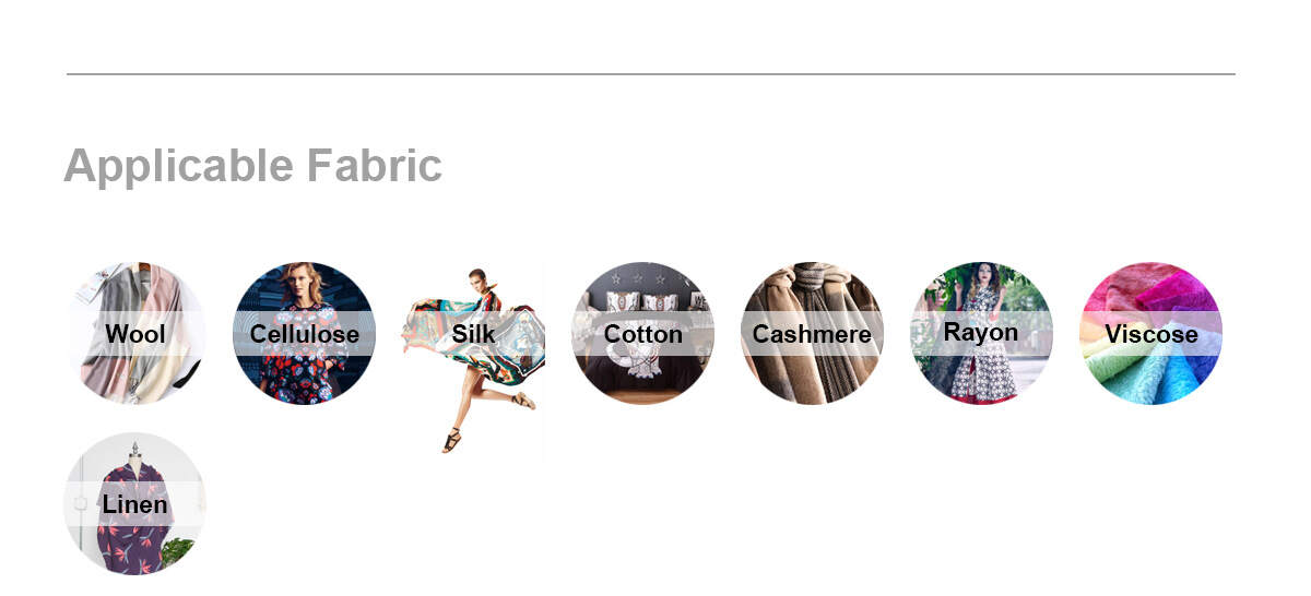 Fashion, cloth, cut-parts, scarf, ties, bed linen, interior decorations, Home Furnishings, Apparel Fabrics, Garment Industry, Signages & Banner Segment etc.