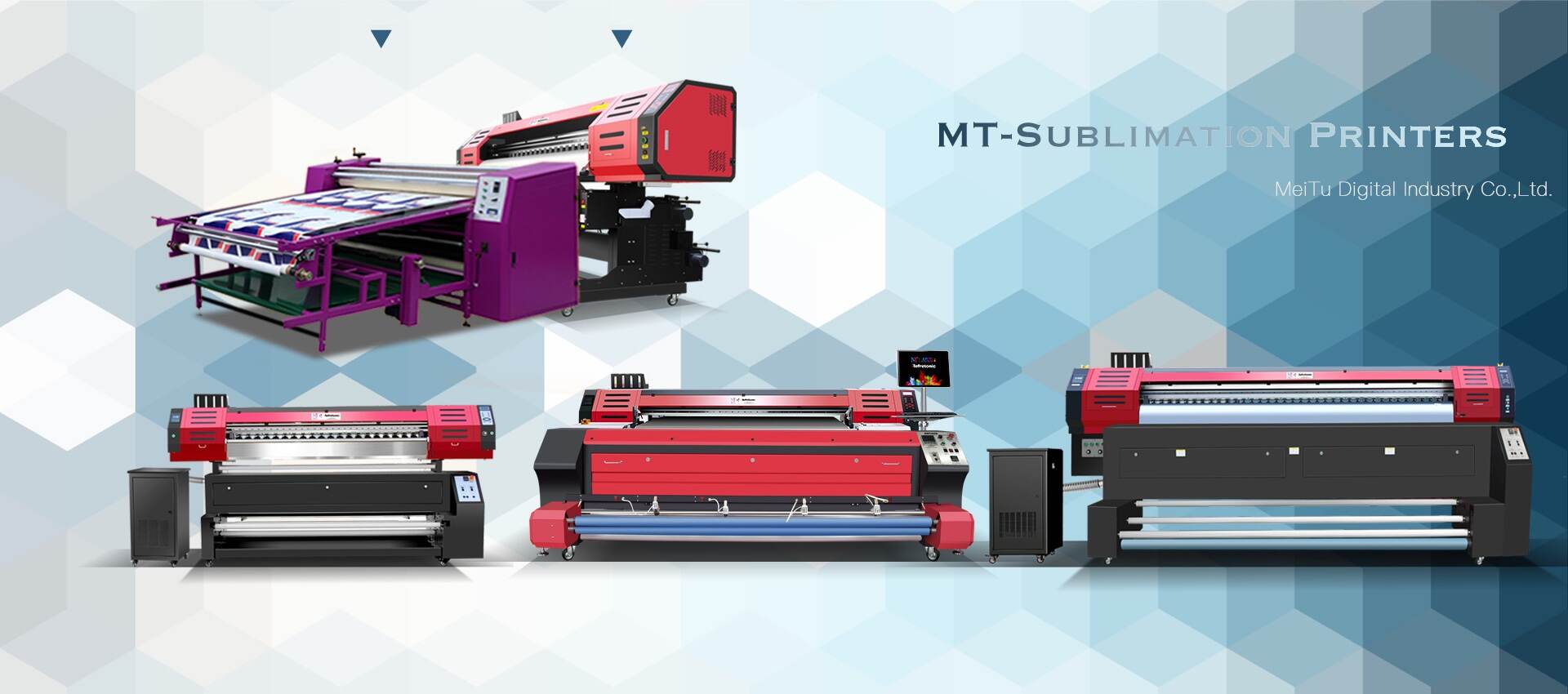 MT Digital Textile Dye Sublimation Inks (Eco-inks, Environmentally-friendly inks). MT inks are REACH regulation compliant (Registration, Evaluation and Authorization of Chemicals) in order to be a true eco-friendly solution. MT produces revolutionary and innovative digital textile sublimation printers that print featuring vivid colors, wide color gamut, high fastness and durability.