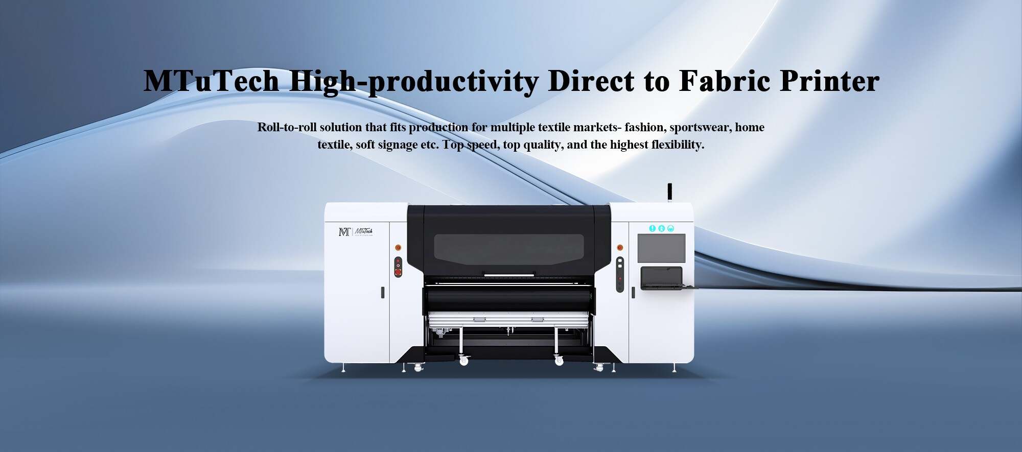 Achieve higher standards of quality on the widest range of fabrics with MTuTech industrial direct to fabric printer MT- TX 1816, you’re able to bring new ideas faster to the market in a fast, cost-effective way.