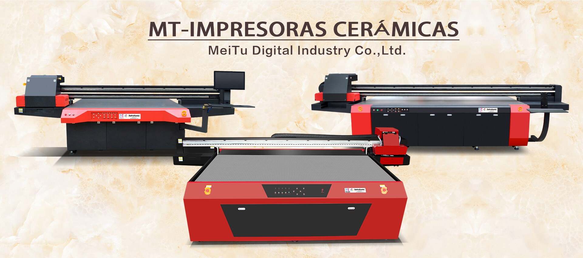 El sistema de impresora de cerámica digital UV plana de MT utiliza tinta de curado UV de cerámica especializada para imprimir imágenes de patrones de alta resolución en cerámica y baldosas de cerámica.