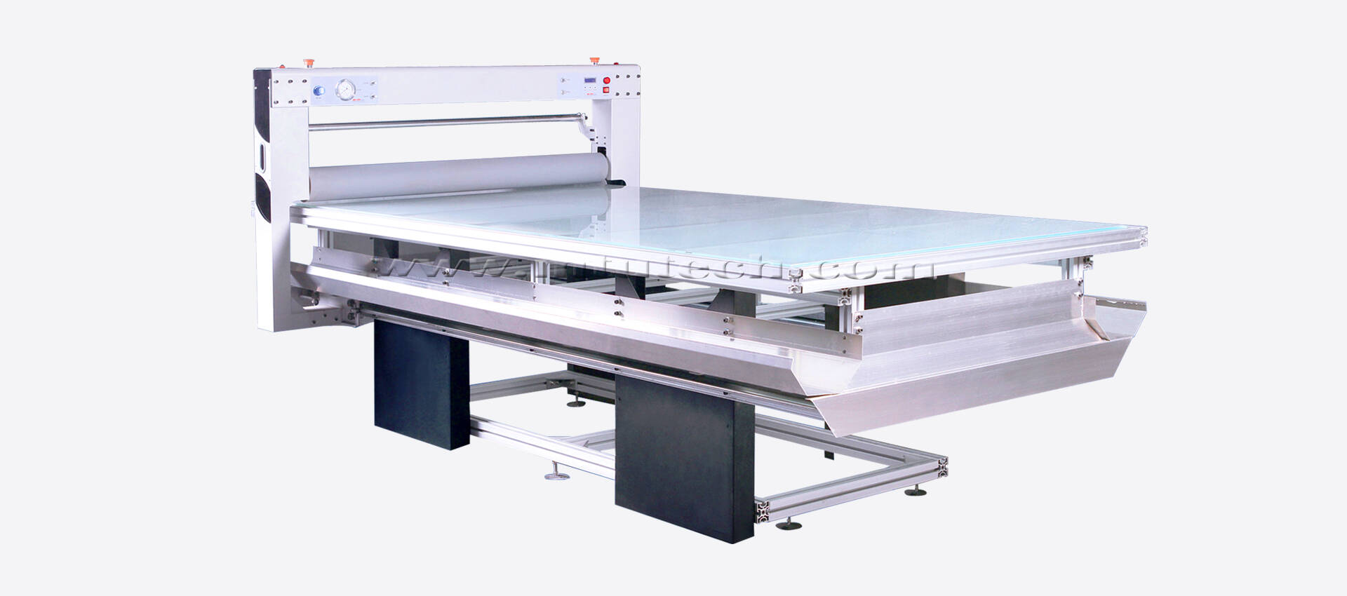 6. Serie Flatbed laminadores MF1325-B4 están diseñados para la aplicación de láminas y película de transferencia de secar por completo las burbujas de forma gratuita y sin pliegues. La máquina de laminación de superficie plana compone con una mesa de trabajo, de alta resistencia torno aleación de aluminio y un pórtico móvil con un rodillo de accionamiento neumático, que se desplaza manualmente sobre la superficie.