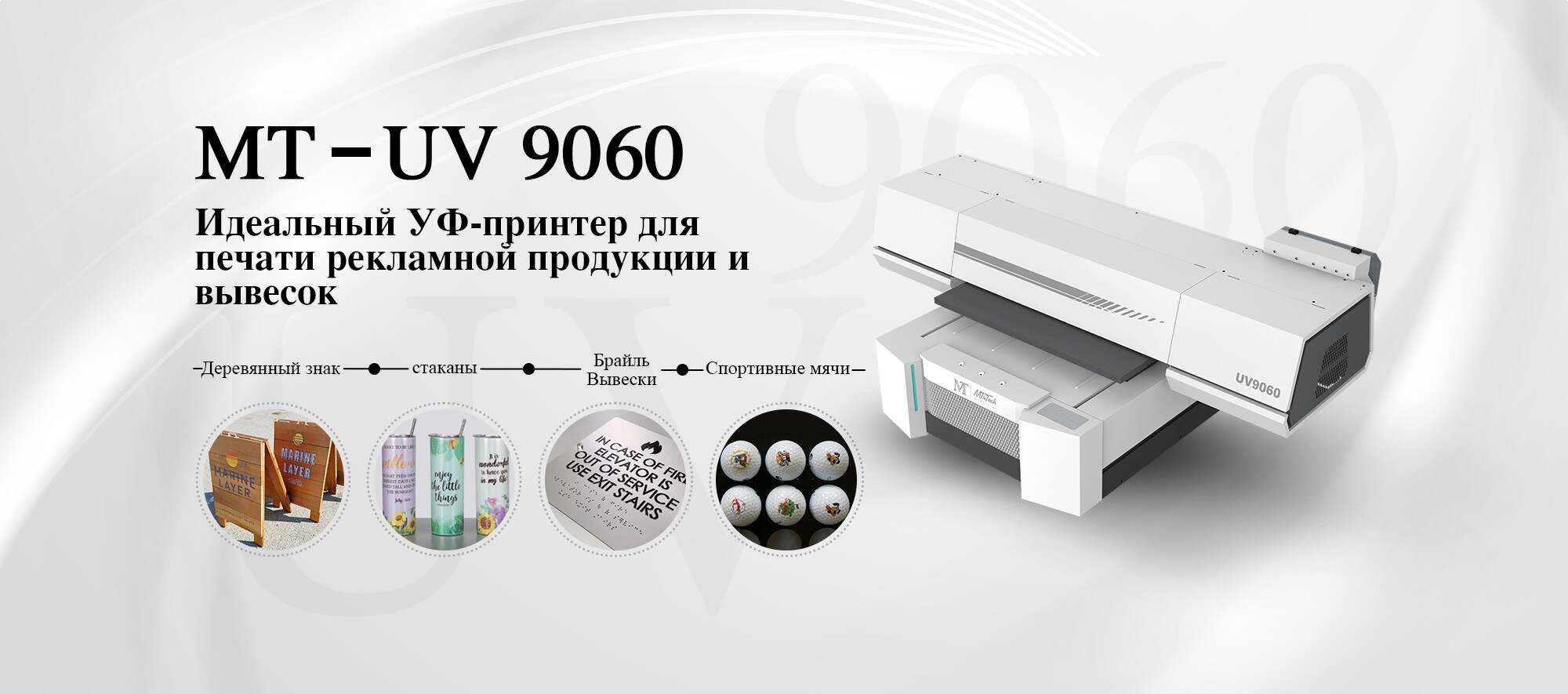 MT-UV 9060Pro имеет множество применений и эффективен для печати различных рекламных материалов. MT-UV 9060Pro предлагает возможность печати как непосредственно на объекте, так и на пленке.