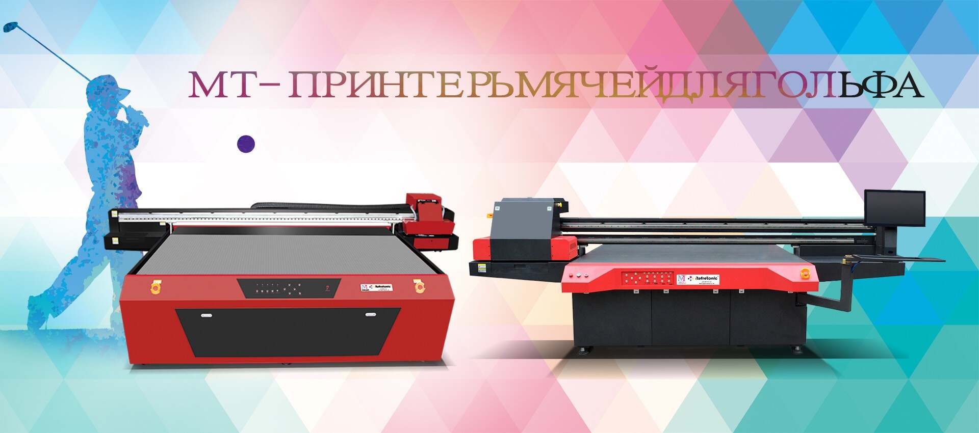 Golf УФ продукта Принтер может усовершенствовать совместим с различных отраслей промышленности, различных материалов. Golf Продукт УФ принтер не печатает только поле для продукта, но и печатает на других жестких материалов, таких как акрил, хрусталя, камней и стекла. Использование MT Golf Продукт УФ-принтер может избежать проблем, связанных с шелкографией и передачи печати. Он отвечает диверсифицированных требованиям рынка и предоставляет полный спектр услуг по производству для пользователей.