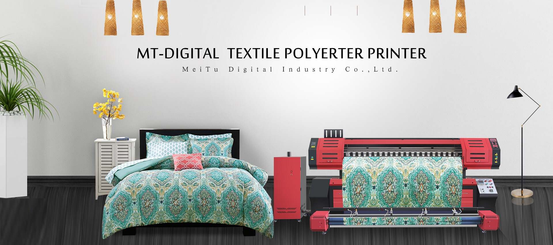 MT数码带式纺织品印花机采用先进的伺服机构系统,确保印花精度。实现了丝、麻、棉、氨纶、涤纶、毛巾、毯子、人造面料等的数码带纺织品印花。它带来了纺织印染技术的革命,真正体现了小批量、快速反应的个性化市场需求!
