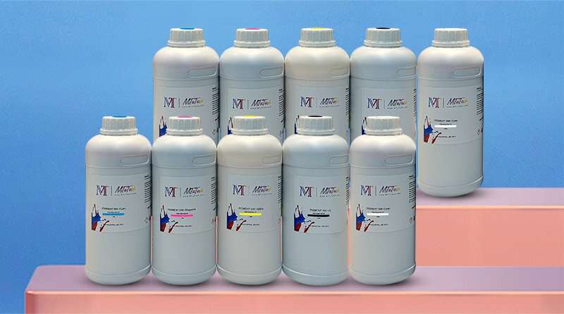 8 色 DTF 荧光墨水 (CMYK + FM+FY+FG+FO) 具有广色域和鲜艳色彩。