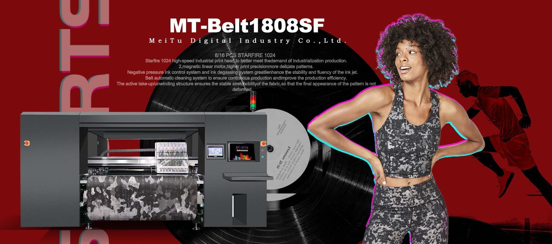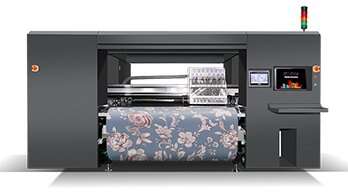 带 8 个理光打印头的高生产率导带纺织品打印机。